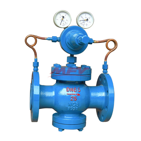 本系列先導活塞式氣體減壓閥屬于先導活塞式減壓閥。由主閥和導閥兩部分組成。主閥主要由閥座、主閥盤、活塞、彈簧等零件組成。導閥主要由閥座、閥瓣、膜片、彈簧、調節(jié)彈簧等零件組成。通過調節(jié)調節(jié)彈簧壓力設定出口壓力、利用膜片傳感出口壓力變化,通過導閥啟閉驅動活塞調節(jié)主閥節(jié)流部位過流面積的大小,實現減壓穩(wěn)壓功能。本先導式超大膜片高靈敏度減壓閥主要用于氣體管路,如空氣、氮氣、氧氣、氫氣、液化氣、天然氣等氣體。