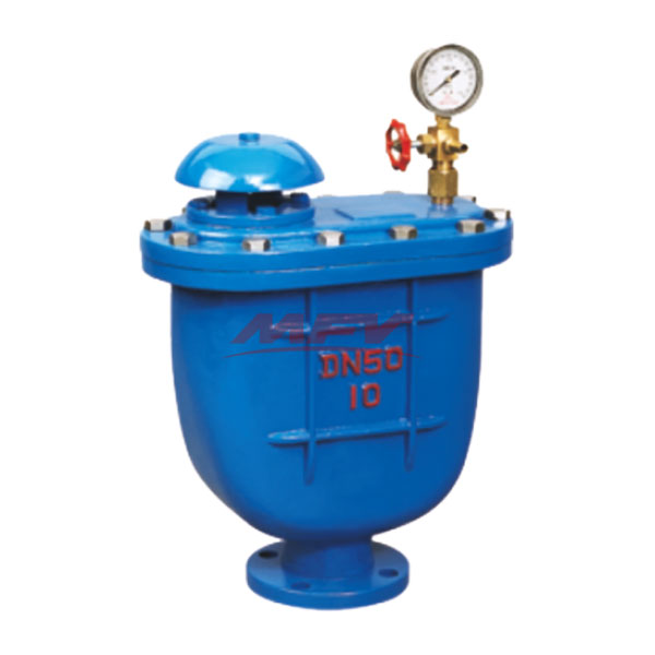 當管內開始注水時,塞頭停留在開啟位置,進行大量排氣,當空氣排完時,閥內積水浮球被浮起,傳動塞頭至關閉位置,停止大量排氣;當管內水正常輸送時,如有少量空氣聚集在閥內到相當程度,閥內水位下降,浮球隨之下降,此時空氣則由小孔排出。當抽水機停止,管內水流空時,或遇管內產生負壓時,此時塞頭開啟,吸入空氣確保管線安全。
