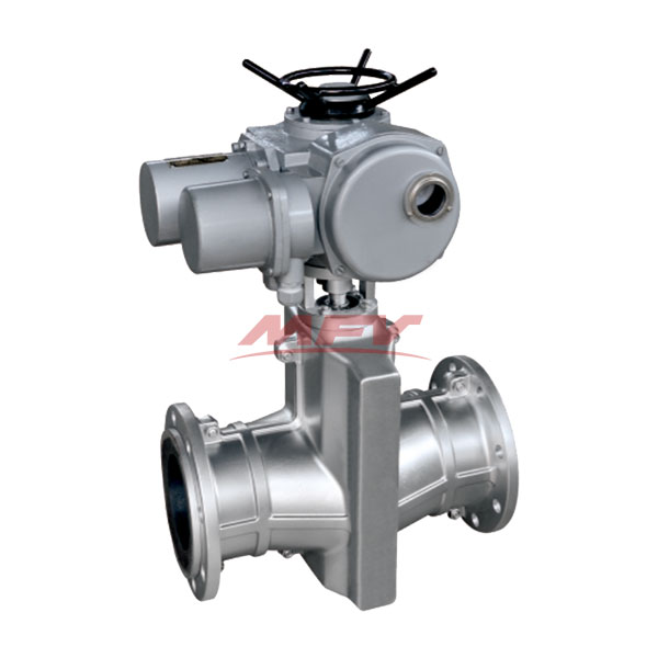 通電后,電動執行器帶動閥桿工作,使大小閥桿同時帶動上下閘板,壓縮管套,進行關閉,反轉即行開啟,這樣,閘板在導柱之間上下往復完成閥門開閉工作。另外,因橡膠管套承力,因此在開關時,操作人員旋轉手輪時只要感到適量抵觸,均己達到開閉極點,切勿盡力或多人輔助,禁用其他工具開閉。